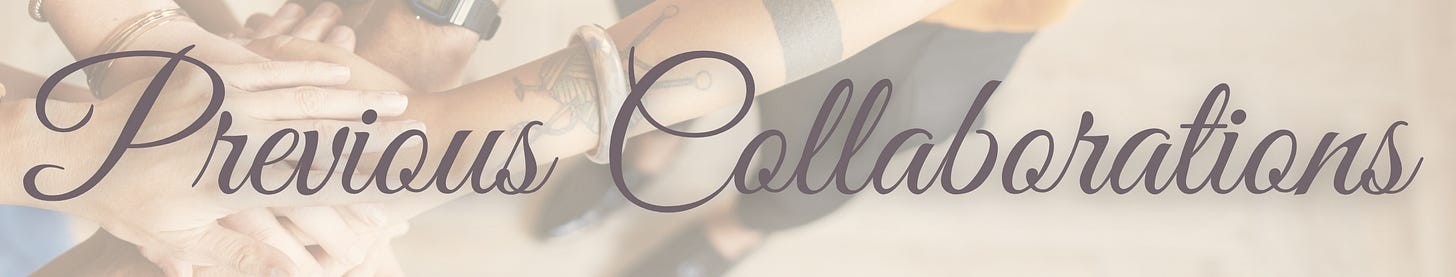 Thank you for visiting my little library of Collaborations - I hope you’ve enjoyed diving into some of them. I just LOVE connecting with people here on Substack and I am always on the look out for new and interesting ways to collaborate. If you have any ideas or suggestions on how we might create something together, please do get in touch - I would LOVE to hear from you! Thanks! 🤗