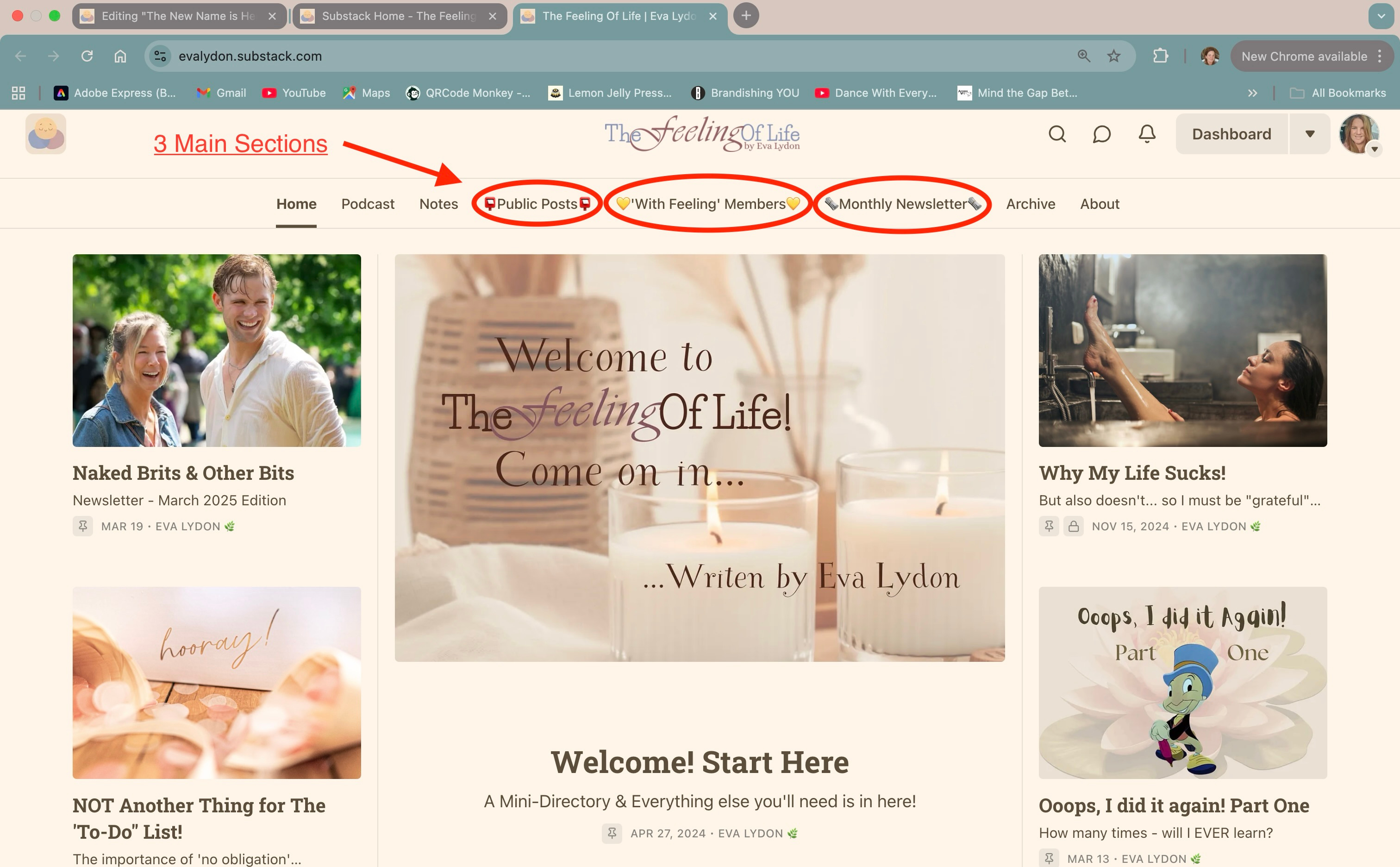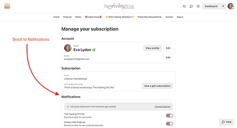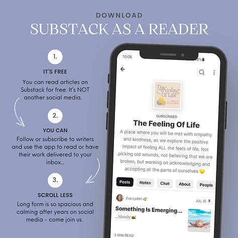 You will see on the navigation bar in the photo, you can also find my ‘Podcast’, ‘Notes’ - where I share any writing, updates, podcasts, promotions, etc from other writers on Substack. Then there’s the ‘Archive’, where you can find all my previously published writing. Finally, there’s the ‘About’ page, where you can read all about me and what ‘The Feeling of Life’ is all about.