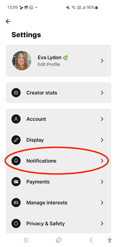 In Settings, click on ‘Notifications’