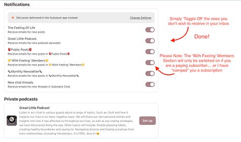 Although Substack is an Ad-free, Spam-free, calm and inspiring place to hang out, there are a couple of quick things you can do to make it an even better experience!